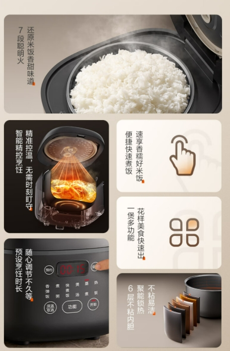 苏泊尔(SUPOR)小型电饭煲电饭锅3升2-6人前置大屏面板24小时预约多功能家用智能电饭煲SF30FC0063