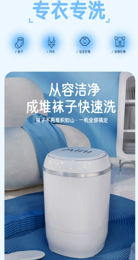 VCJ【德国品牌】洗衣机迷你小型家用母婴儿童宝宝洗内衣内裤洗袜子神器宿舍出租房波轮半自动洗沥一体