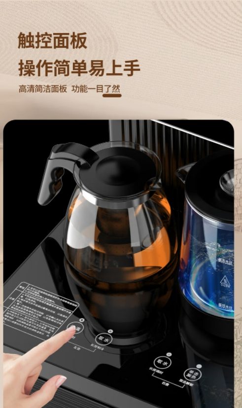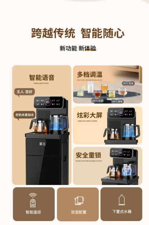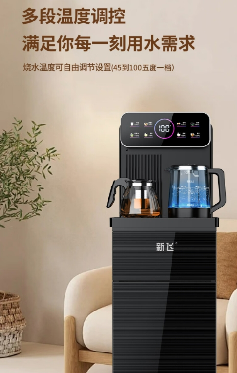 新飞茶吧机 家用高端客厅用2024年新款饮水机立式下置水桶智能全自动制冷制热两用一体柜 灰色 温热型 【炫彩大屏】