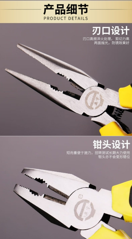 德东钢丝钳专业级高硬度钳子3件套尖嘴钳电工家用省力老虎钳斜嘴钳子 6寸钢+6寸尖+6寸斜