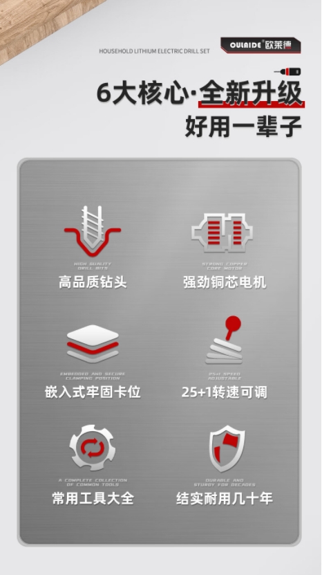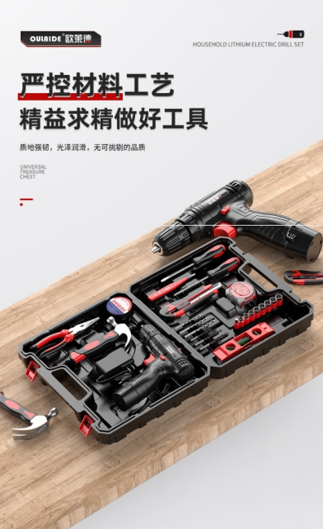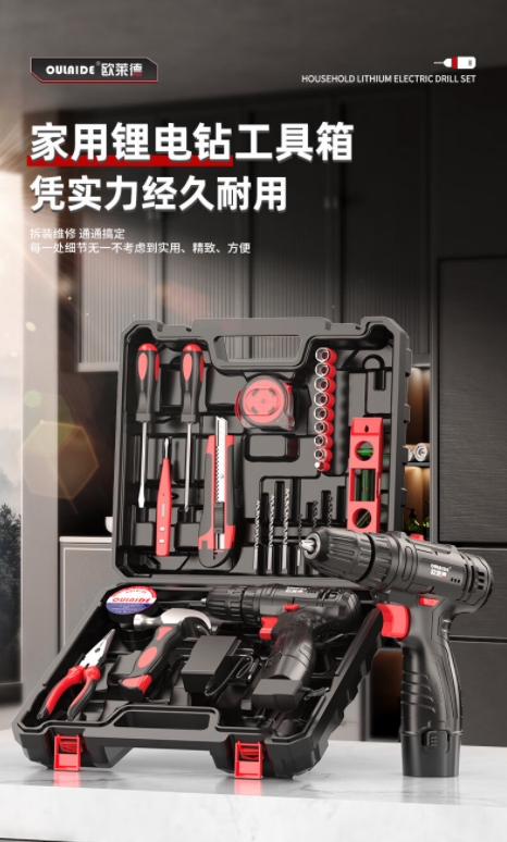 欧莱德(OULAIDE)手电钻充电钻家用组合工具箱套装维修套装电动螺丝刀五金工具箱