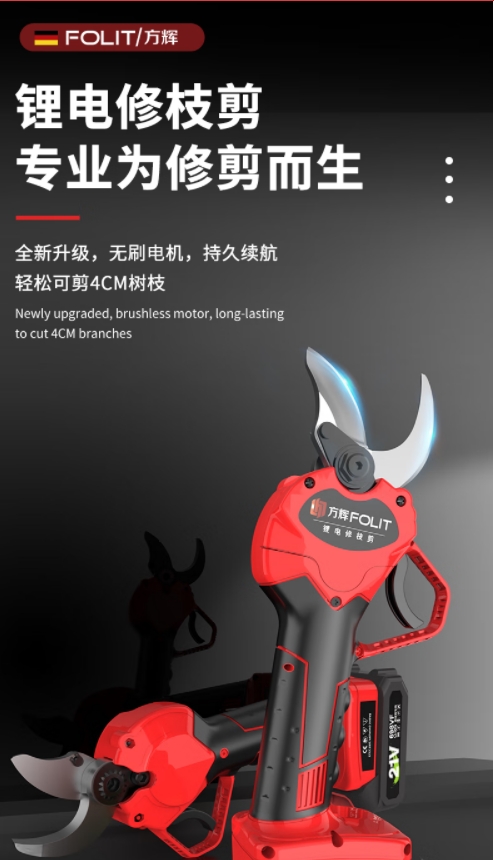 FOLIT无刷电动剪刀剪树枝充电式锂电池修枝剪园林果树电剪刀园艺剪粗枝 无刷旗舰款5.0开口丨两电一充