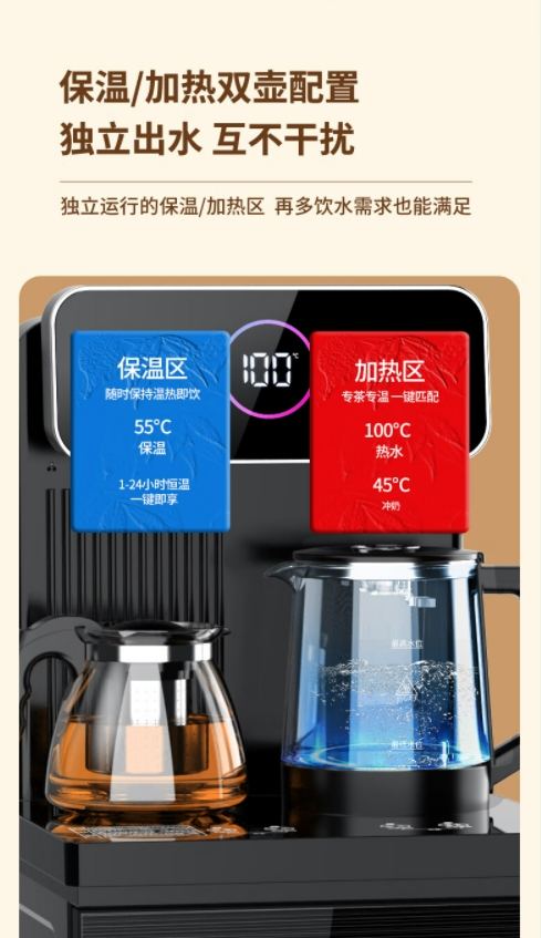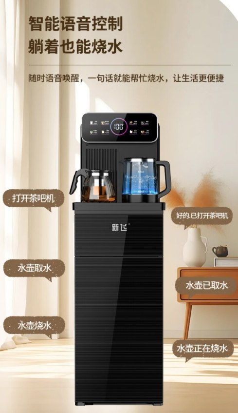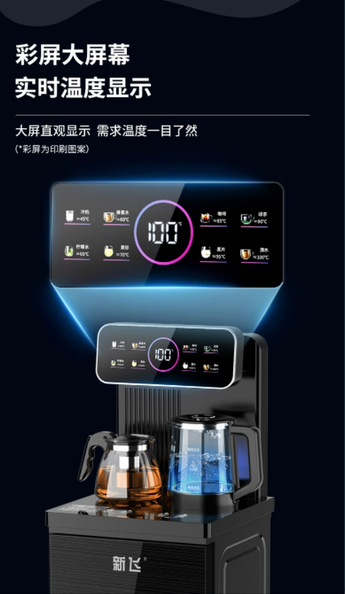 新飞茶吧机 家用高端客厅用2024年新款饮水机立式下置水桶智能全自动制冷制热两用一体柜 灰色 温热型 【炫彩大屏】