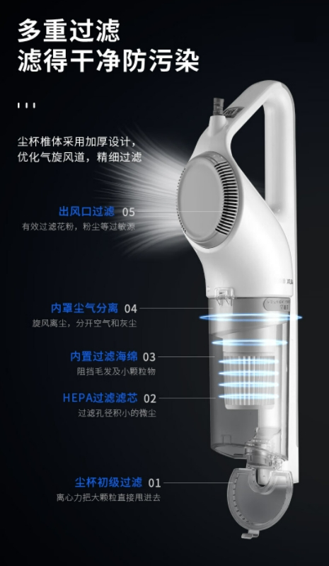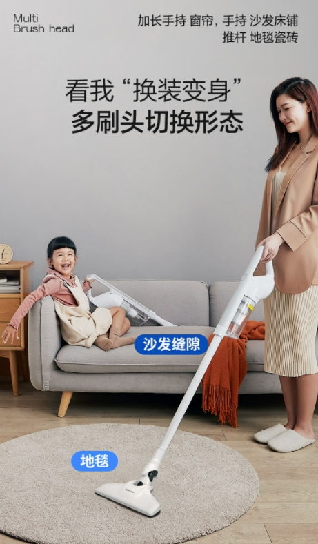 奥克斯(AUX)家用吸尘器手持地毯式低噪音小型迷你大功率强力吸尘器除尘机宠物家庭有线5米 AXS-927 白色标配版
