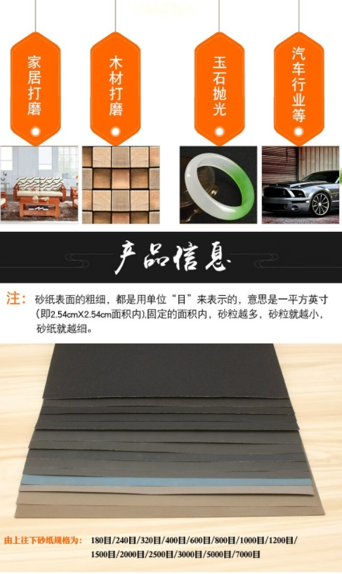 水磨砂纸抛光打磨神器磨砂纸片800目水砂纸汽车漆面打磨2000超细耐磨木工文玩 180目水砂纸