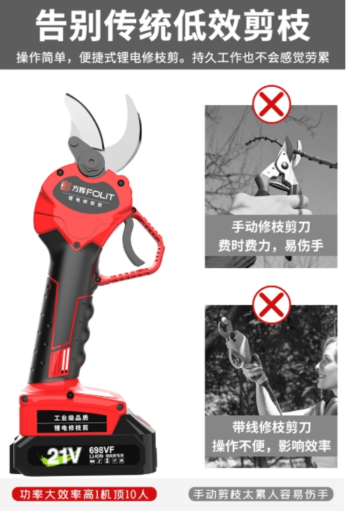 FOLIT无刷电动剪刀剪树枝充电式锂电池修枝剪园林果树电剪刀园艺剪粗枝 无刷旗舰款5.0开口丨两电一充