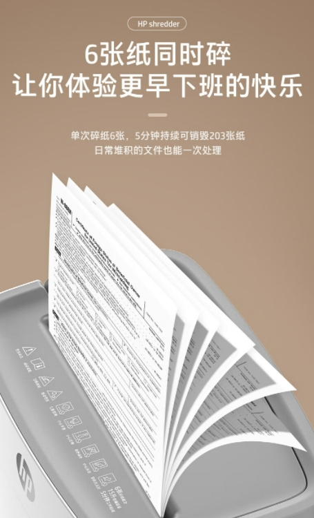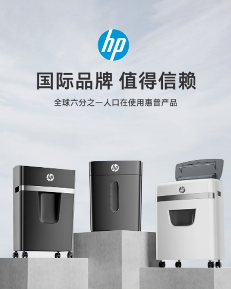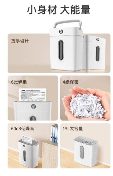 HP惠普(HP)4级保密办公家用碎纸机粉碎机 (单次6张 连续碎5分钟 15L 可碎卡碎订书针)W1505CC