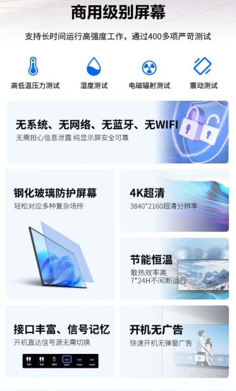 联想thinkplus 65英寸4K显示器 电脑商用显示屏 无广告 无网络 开机直达 无系统非智能 监控监视器Z65ftg